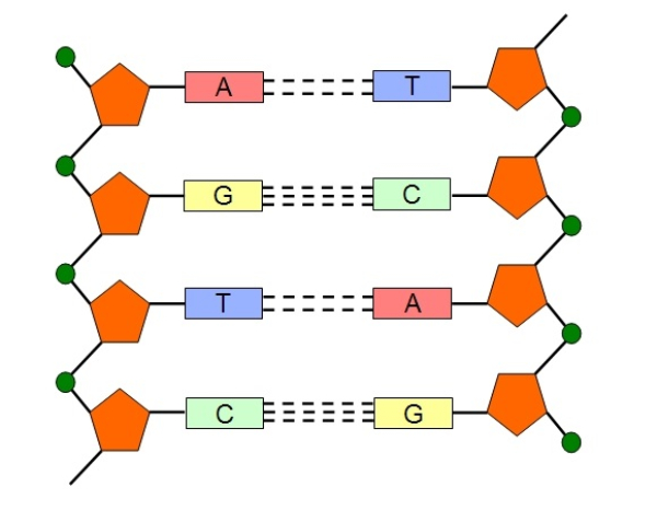 DNA merupakan suatu polimer yang terdiri dari banyak nukleotida. Satu nukleotida terdiri atas 1 gugus fosfat, 1 gula deoksiribosa dan 1 basa nitrogen.