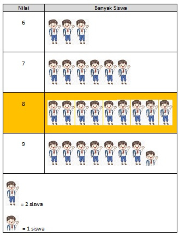 Diketahui hasil ulangan matematika siswa kelas III sebagai berikut.
