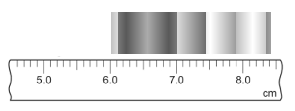 Rara akan mengukur diameter sebuah kawat, tetapi dia hanya memiliki mistar di rumah. Akhirnya, kawat tersebut dia potong menjadi 16 bagian kemudian dia deretkan kawat-kawat tersebut di atas meja. Selanjutnya, dengan menggunakan mistar dia ukur panjang deretan kawat dan menunjukkan hasil pengukuran seperti pada gambar. Dengan memperhatikan aturan angka penting, berapakah diameter satu kawat yang Rara ukur dalam satuan mm?